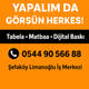 Işıklı / ışıksız alternatif sunabilen, tasarım konusunda yaratıcı olan ustalar yazsın. Malzeme kalitesi önemli, 2 ay sonra solacak tabela istemiyorum. Uzun ömürlü, temiz işçilik şart.