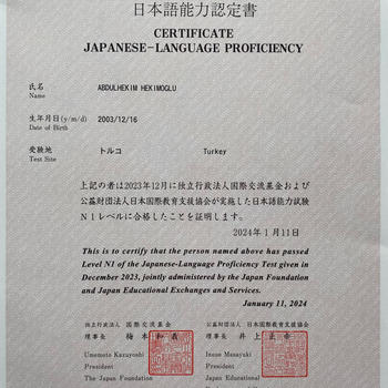 Japonya'da büyüdüm. Japonca’yı ana dilim gibi konuşabiliyorum. Japonca dil sınavlarında en yüksek seviye için dil sertifikam bulunmakta. Dersi kendi hazırladığım materyal ve Genki kitabı ile işliyorum. Dersi haftada bir gün veya iki gün öğrencinin isteğine göre işliyorum. Tercümanlık anlamında sağlık sektöründe tercümanlık yapıyorum. Gelen Japon hastanın muayenesinde yardımcı oluyorum. Tıp fakültesi öğrencisiyim. Diğer sektörlerle ilgili tercümanlık da yapabilirim.