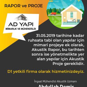 Siz değerli müşterilerimize AD YAPI MİMARLIK & MÜHENDİSLİK firması olarak Akustik Rapor ve Akustik Proje hizmeti sunmaktayız. İletişim: