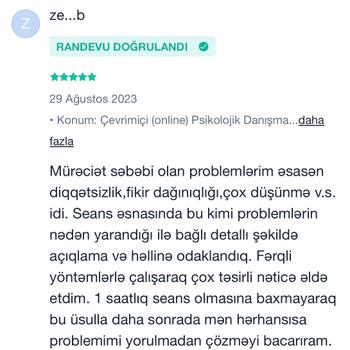 Uzman Psikolojik Danışmanım. Lisans ve yüksek lisans eğitimimi Psikolojik Danışmanlık ve Rehberlik alanında tamamladım. EMDR ve Bilişsel Davranışçı Terapi ekolleriyle bireysel, çift ve cinsel danışmanlık alanlarında çalışıyorum. Kaygı, travma, ilişkisel sorunlar, özgüven, cinsel işlev sorunları ve duygusal zorlanmalar üzerine danışanlarımla güvene ve etik ilkelere dayalı bir çerçevede çalışıyorum. Seanslarımı danışanın ihtiyacına göre yapılandırıyor; online ve yüz yüze danışmanlık hizmeti sunuyorum. Amacım, danışanlarımın kendileriyle ve ilişkileriyle daha sağlıklı bir bağ kurmalarına destek olmaktır.
