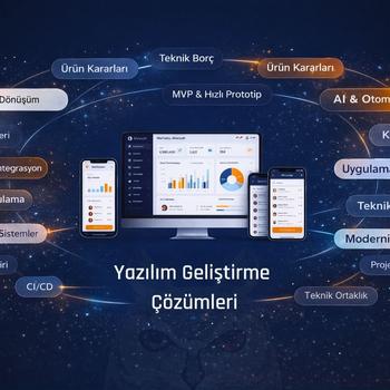 Yazılım projelerinde yalnızca geliştirme değil, doğru karar sırasını önemsiyoruz. Mobil uygulama, web tabanlı ürünler, SaaS platformları ve mevcut sistemlerin modernizasyonu dahil olmak üzere; tanımlı kapsamlı ve sürdürülebilir yazılım çözümleri geliştiriyoruz. Çalışma yaklaşımımız: Gereksinimleri netleştirmeden geliştirmeye başlamamak Ne yapılacağı kadar ne yapılmayacağını da belirlemek Çalışan ve ölçülebilir çıktılar üretmek Uzun vadede teknik borç oluşturmayacak mimari tercih etmek Erken aşama MVP geliştirmelerinden, yayında olan sistemlerin büyütülmesine ve teknik ortaklık modellerine kadar farklı seviyelerde çalışıyoruz. Belirsiz veya sürekli değişen projeler yerine, kararları netleşmiş ve uygulanabilir çerçevesi olan işlere odaklanıyoruz. Amacımız hızlı kod üretmek değil, doğru sırayla ilerleyen yazılım süreçleri kurmak.