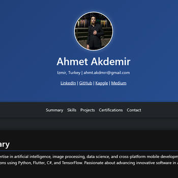 Ben Ahmet Bilgisayar Mühendisliği 3.sınıf öğrencisiyim Mobil uygulama geliştirme , Yazılım geliştirme , Ve görüntü işleme konularında kendimi geliştirdim .sağlık ve başka alanlarda çeşitlli projelerim mevcuttur.