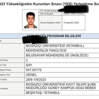 Merhabalar, ben Ahmet Arin YEGEN. YKS 2023'te HAM'da 341, Sayısalda 475. oldum. Boğaziçi Bilgisayar Mühendisliği 1. sınıf öğrencisiyim. Bu zorlu YKS sürecini yakından bildiğim için bu dönemden geçecek arkadaşlara yardımcı olmak adına bu ilanı koydum. TYT ve AYT için tüm derslere hakimim. 9, 10, 11, 12 ve mezunlara ders verilir