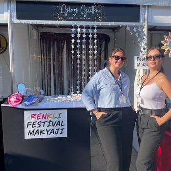 Festivallerde, düğün, kına, nişan, doğum günü ve bride partilerde glitter makyaj yapmaktayız.