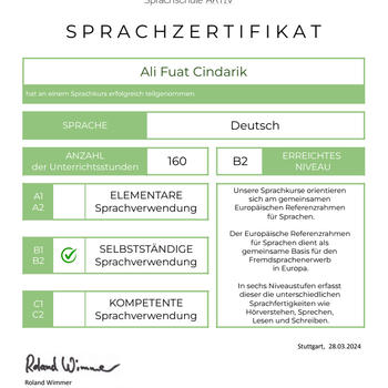 Merhabalar, bir Makine Mühendisi olarak yaklaşık iki yıllık Almanya serüvenimden sonra Türkiye'ye dönüş yaptım. Bu süre zarfında Almanya'da B2 kursunu tamamladım. Konuşma pratiği ve Almanca sınavları hakkında geniş bilgi sahibiyim. Şimdilik Aile Birleşimi sınavı ve lise Almancası konularında yardımcı olmak isterim. İlgilenen arkadaşlar ile ücretsiz tanışma dersi yapabilirim. Ayrıca Almanya ile aklınıza takılan sorular varsa elimden geldiğince cevaplayabilirim.