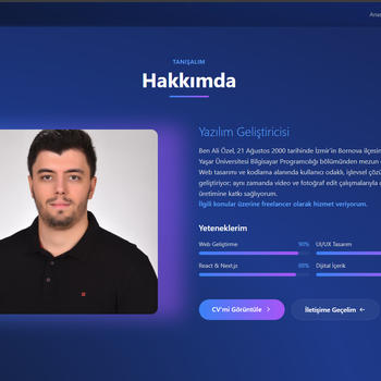 Web tasarımı ve kodlama alanında kullanıcı odaklı, işlevsel çözümler geliştiriyor; aynı zamanda video ve fotoğraf edit çalışmalarıyla dijital içerik üretimine katkı sağlıyorum