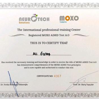 Moxo Dikkat Testi uygulayıcısıyım. Diğer uygulayıcılardan farklı olarak aynı zamanda ONLINE olarak uzaktan bağlantı ile bu testi yapabilirim. İster Ankara'da olun istesesniz dünyanın diğer ucunda testi uyguladıktan sonra ayrıntılı döküman olarak size sunabilir hem dijital olarak hem de dilerseniz normal baskı halinde elden/posta yoluyla size sunabilirim.