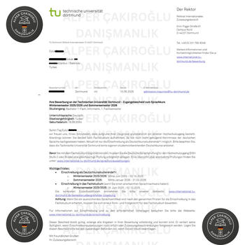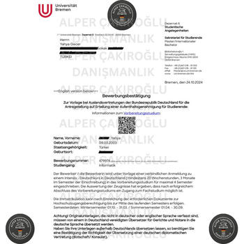 Merhabalar, Almanya'da Frankfurt şehrinde yaşıyorum. Bilgisayar mühendisliği ile Almanya'ya geldim ve Almanca C1 sertifikam bulunuyor. Türkiyede 4 senelik bir bölüme yerleştiğiniz taktirde Almanya'daki Devlet üniversitelerinden %100 Şartlı Kabul garantisi sunuyoruz. En önemli ve başka yerde denk gelemeyeceğiniz bir hizmetimiz; Vize sürecinden sonra sizlere C1 Almanca sınavlarıyla alakalı kaynak ve tecrübeleri paylaşmamız. Bu desteğim sayesinde dönem kaçırmadan eğitiminize başlama imkanı buluyorsunuz. Almanca ve üniversitelerin sistemini bile bilmeyen, ayrıca aşırı yüksek ücret talep eden firmalara göre çok daha kapsamlı , birebir ve süreci yaşamış biri olarak garantili ve daha uyguna bir hizmet sunuyoruz. Tamamen Ücretsiz bir ön görüşme yaparak süreç hakkında detaylıca konuşup durumunuzu değerlendirelim. Tüm belgelerinizin hazırlanması, Yeminli tercüme ve başvuru işlemleri , Üniversite kabulleri, Almanca yönlendirmesi:Kaynak-Tecrübe paylaşımı, Vize süreci planlanması başvurusu ve yönetimi işlemlerini eksiksiz tamamlıyoruz. Size özel Almanca Cv ve Motivasyon mektubunuz dikkatlice hazırlanıyor. Bu stresli süreçte biz tüm işlemlerinizi hallederken sizlere sadece Almanca çalışmak kalıyor.