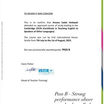 Merhaba! Ben Arezoo. Cambridge English (İspanya) onaylı CELTA sertifikasına sahibim ve Above Standard (standart üstü) dereceyle mezun oldum. Yeditepe Üniversitesi’nden MBA derecem ve Makine Mühendisliği lisans diplomam bulunuyor. Dört yılı aşkın süredir İngilizce öğretiyorum; hem çocuklarla hem de yetişkinlerle çalışarak onların akıcılıklarını, özgüvenlerini ve kişisel ve profesyonel başarıya ulaşmaları için gerekli dil becerilerini geliştirmelerine yardımcı oluyorum. Farsça, İngilizce ve Türkçe konuşabiliyorum. Derslerim dinamik, interaktif ve her öğrencinin hedeflerine özel şekilde tasarlanır. İster İngilizceyi ilk kez öğreniyor olun, ister akıcılığınızı geliştirmek ya da akademik/profesyonel hedeflerinize ulaşmak isteyin, öğrenme sürecini etkili, ilgi çekici ve yapılandırılmış bir şekilde yürütüyorum. Okullarda ve online platformlarda ders verdiğim için, farklı yaşlara, seviyelere ve ihtiyaçlara kolayca uyum sağlayabiliyorum. Derslerimizde bol bol konuşma pratiği, yararlı kelime bilgisi ve net dilbilgisi açıklamaları yaparak İngilizceyi doğal, özgüvenli ve amaçlı bir şekilde kullanmanızı sağlıyorum. Benimle İngilizce öğrenmek hem keyifli hem de sonuç odaklı bir süreçtir. İlk derslerden itibaren gelişiminizi fark edeceksiniz ve birlikte hedeflerinize adım adım ulaşacağız. Okuduğunuz için teşekkür ederim. Sizi derslerimde görmek ve İngilizce yolculuğunuza birlikte başlamak için sabırsızlanıyorum!