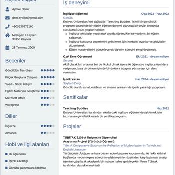 İngiliz Dili ve Edebiyatı mezunuyum dört yıldır okula yardımcı ve sınavlara hazırlık olarak İngilizce dersleri veriyorum.