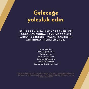AYDIN ŞEHİR PLANLAMA olarak her tür ve ölçekte İmar Planı Yapımı (Nazım İmar Planı, Uygulama İmar Planı vb.), Plan Değişikliği (Yoğunluk ve Kat artışı), Özel kişi ve kuruluşların parsel bazında imar durumu, yer seçimi, dosya takibi vb. danışmanlık hizmetleri vermekteyiz. Furkan Aydın AYDIN ŞEHİR PLANLAMA Camivasat mah. 9. Sokak No:1 Kat:4 Edremit/Balıkesir https://aydn-sehir-planlama.business.site Instagram: @aydinplanlama