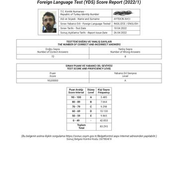 ÖSYM'nin düzenlemiş olduğu YDS, YKS/YDT, YÖKDİL sınavlarına ve LGS İngilizce sınavına hazırlanan öğrencilere özel ders veriyorum. Derece yaptığım ÖSYM sınavları: YDS İngilizce : 90 Puan YDT İngilizce : 77/3 YDS Almanca: 70 Puan YDS Fransızca: 72.50 Puan