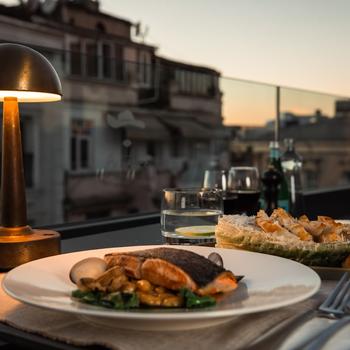 Pera’nın en güzel noktasında, tarihi dokusuyla büyüleyen bir otelin çatısında, unutulmaz anlar yaşamaya hazır olun! Muhteşem manzarası, eşsiz atmosferi ve özel etkinlikler için tasarlanmış benzersiz konseptiyle, rooftop mekanımız sizi bekliyor.