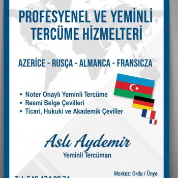 Azerice Rusça Almanca Fransızca tercüman olarak Noter onaylı Resmi işlemlerinize yardımcı olunur Ordu Ünye Fatsa Terme