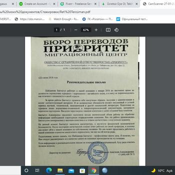 Moskova Göç İdari Merkezinde iki senelik tecrübeye sahip çevirici. İngilizce-Rusça-Türkçe-Kırgızca ve Türk dilleri tercümanı.