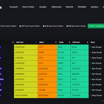 Kripto para piyasasında para kazanmak mı istiyorsunuz. Doğru yere geldiniz. Temel ve Teknik analiz eğitimi almak mı istiyorsunuz. Kendime ait kripto para üzerine yazımım bulunmaktadır. İncelemek isterseniz. www.volume-signals.com Sistemimizin çalışma prensibini kısaca özetlersek. Sistemimizde balina hareketleri diye tabir ettiğimiz Kripto para piyasasında yüklü alımları satımları yakalayan bir yazılımımız bulunmaktadır bu yazılım sayesinde örnek veriyorum Bitcoin de veya herhangi bir altcoinde yüklü bir alım olduğunda ilk sizin haberiniz oluyor web sitesinden veya kişiye özel telegram botundan bunu görüntüleyebiliyorsunuz. Ekstra olarak bunun haricinde Sinyaller bölümü var yazılımımız teknik analizini yapıyor coinlerin eğer uygun görürse spot ve vadeli(futures) ayrı ayrı sinyalleri paylaşıyor. İsterseniz kendi stratejinizle balina programımızdan işlem çıkartabilirsiniz isterseniz sinyal bölümünü kullanarak hiç uğraşmadan sinyallere girebilirsiniz. Sinyal Programımız %98 oranında başarı sağlamaktadır. Sitemizde kripto paralar ile ilgili son dakika haberler ve etkinlikler bölümü bulunmaktadır ayrıca anlık bildirimlerini telegram üzerinden alabiliyorsunuz.