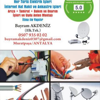 Ev ve İşyerlerinizde her türlü Elektrik işleri ; İnternet Hat Nakil ve Ankastre işleri ; Arıza-Tamirat-Bakım ve Onarım işleri ; Uydu Anteni arıza ve Montaj işleri İtina ile yapılır .