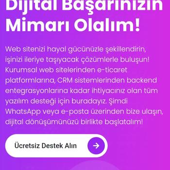 Web site tasarımı ve geliştirme konusunda 4.5 yıllık deneyime sahibim. Modern ve kullanıcı dostu arayüzlerden, güvenilir altyapılara kadar her detayda mükemmeliyeti hedefliyorum. Müşteri ihtiyaçlarını doğru anlayarak, estetik ve işlevselliği birleştiren profesyonel çözümler sunuyorum. Projelerde yenilikçi teknolojileri kullanarak, markanızın dijital dünyada öne çıkmasını sağlıyorum. Hızlı, SEO uyumlu ve tüm cihazlara uygun web siteleriyle işinizi bir adım öteye taşımak için buradayım.
