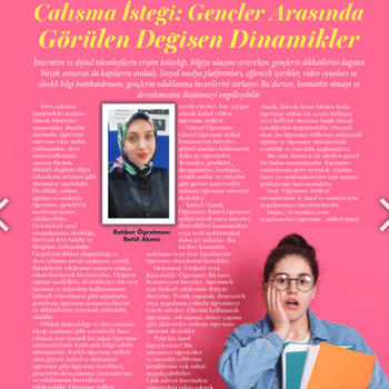 5 yıldır rehber öğretmen ve öğrenci koçu olarak çalışıyorum. Aile danışmanı olarak da görev almaktayım. Özellikle ergenler üzerinden uzmanlığım olmakla beraber çocuğunlukla evlilik öncesi çiftlere ve yeni evlilere danışmanlık hizmeti sunmaktayım