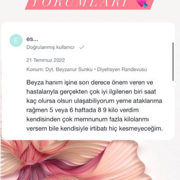 Hepinize merhabalar ! Ben Uzman Diyetisyen Beyzanur Özer , Çekmeköy’de kendi kliniğim var , yüzyüze ve online diyet hizmeti vermekteyim , aynı zamanda ofisimde 3 farklı bölgesel incelme cihazı bulunmaktadır, sıkılmadan diyet yapmak hızlı ve kalıcı bir şekilde bölgesel yağlarınızdan kurtulmak istiyorsanız bu yolu birlikte yürüyebiliriz 🤍