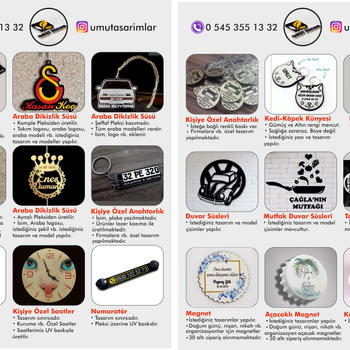 UV Baskı, Digital Baskı, Lazer Kesim, Plotter Kesim, Promosyon Ürünleri, Plakalık, Dikizlik Süsü, Anahtarlık, Baskılı Saat, Ahşap Saat, Özel kesim saat, Numaratör, Bardak Altlıkları, Duvar Süsleri, Magnet, Tablo, Baskılı Tablo, Özel Kesim Tablo, Magnet, Açacak Magnet, Nişan-Nikah-Doğum Günü vb. organizasyon magnet, Kapı Süsü