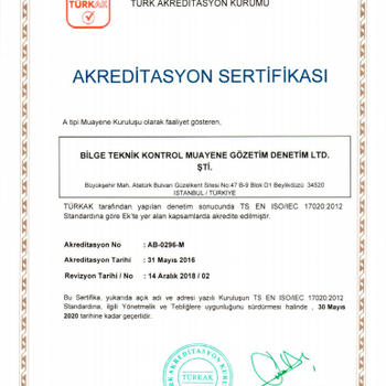 Bilge Teknik Kontrol Muayene Gözetim Denetim Ltd. Şti, İş sağlığı ve güvenliği kapsamında Periyodik Teknik Kontrol ve Ölçümler konusunda faaliyet gösteren bir muayene kuruluşudur. Bünyesinde bulundurduğu kendi branşlarında uzman ve yetkin Makine ve Elektrik Mühendisleriyle hizmet vermektedir.