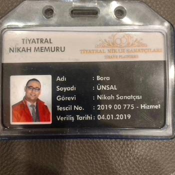 Merhaba, Ben Türkiye nin ilk profesyonel Türk Patent Enstitüsü Marka Tescilli Tiyatral Nikah Sanatçısıyım. 2016 yılı yaz sezonunda başladığımız tiyatral nikah olayına geçen zaman zarfında bir çok yenilikler ekleyerek farklı bir boyuta taşıdık. İlk olarak marka olmak adına marka tescili alarak bu alanda kendimizi kanıtlamış bulunmaktayız. Büyük bir haber ajansının yaptığı röportaj sonrası bu alanda talepler artmıştır. Ve artan talepler doğrultusunda yaptığımız işte olumlu yorumlar aldık. Öncelikle Türkiye ‘nin her ilinde hizmet vermekteyiz. Tiyatral nikah olayı saat sıkıntısı olmadan çiftlerimizi stres olmamaları adına, sizler işletmenizde nikah memuru beklemeden rahatlıkla organizasyonunuzu gerçekleştirebilirsiniz. Kendime has üslubum ve esprilerimle dolu dolu çiftlerime bu en güzel anlarını yaşatmaktayım. Türkiye nin bir çok şehrinden davet almaktayım, bu yüzden hangi şehirde olduğunuzun önemi yoktur beni rahatlıkla arayabilirsiniz.