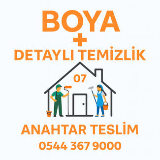 Eviniz bize emanet! Boya + detaylı temizlik… Anahtar teslim! Boya öncesi tadilat, boya ve boya sonrası detaylı temizlik hizmeti veriyoruz.