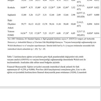 Merhaba! Mevcut akademik kariyerimin yanında, istatistiksel analizlerle sağlık bilimleri ve sosyal bilimler alanlarındaki çalışmalarınıza profesyonel destek sağlıyorum. Verilerinizi sadece SPSS çıktısı olarak değil, APA 7 formatına uygun hâlde tablolaştırıp, bulguları kısaca yorumlayarak raporluyorum. Excel, SPSS ve Jamovi üzerinde; Normallik Analizleri Hipotez Testleri Korelasyon Regresyon Moderatör/ Mediatör Analiz Açımlayıcı/ Doğrulayıcı Faktör Analizleri vb. G*Power üzerinden güç analizi