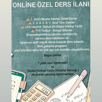 Bireysel öğretim teknikler ile harmanlanmış 7 yıllık tecrübe. Öğrenciye göre ders anlatımı ve sunumu. Öğrencinin saatlerine göre ders planı. Eksik olduğu konularda fazladan ders yapımı için fiyat alınız.