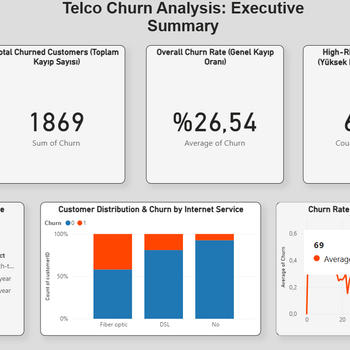 Merhaba! Ben Can. Power BI, Python ve SQL kullanarak işletmelerin verilerini analiz ediyor, görsel ve anlaşılır dashboardlar oluşturuyorum. Amacım, verilerinizi doğru analiz ederek maliyetleri düşürmek, kârlılığı artırmak ve daha bilinçli kararlar almanızı sağlamak. Satış, müşteri veya performans verilerinizi analiz ederek işletmenize özel raporlar hazırlıyorum. Verilerinizin size çalışmasını istiyorsanız, birlikte etkili bir çözüm oluşturabiliriz.