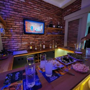 Resimlerdeki max 7 kişilik, bar tabureli, LCD tv bulunan, sigara içilebilen House Bar'da etkinlik yapabilirsiniz. İçecek ve yiyecek her seçenek hazırlanabilir, yanınızda getirebilirsiniz, pub-meyhane tadında size servis edilcektir.4 kişilik konaklama seçeneği de mevcuttur.