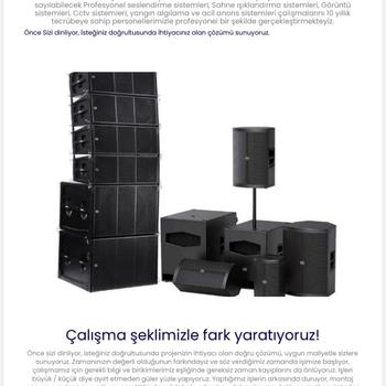 Hakkımızda Önce Sizi dinliyor, İsteğiniz doğrultusunda İhtiyacınız olan çözümü sunuyoruz. Hakkımızda Ankara’da kurulan Proje Alternatif Işık Ve Ses Sistemleri olarak projelerinizin ana kalemleri sayılabilecek Profesyonel seslendirme sistemleri, Sahne ışıklandırma sistemleri, Görüntü sistemleri, Cctv sistemleri, yangın algılama ve acil anons sistemleri çalışmalarını 15 yıllık tecrübeye sahip personellerimizle profesyonel bir şekilde gerçekleştirmekteyiz. Çalışma şeklimizle fark yaratıyoruz! Önce sizi dinliyor, isteğiniz doğrultusunda projenizin ihtiyacı olan doğru çözümü, uygun maliyetle sizlere sunuyoruz. Zamanınızın değerli olduğunun farkındayız ve söz verdiğimiz zamanda işimize başlıyor, çalışmamız için gerekli bilgi ve birikimlerimiz eşliğinde gereksiz zaman kayıplarını da önlüyoruz. İşleri büyük / küçük diye ayırt etmeden güler yüzle yapıyoruz. Yaptığımız işlerin arkasında duruyor, montaj sonrası sorularınızı yanıtlıyor, gerektiğinde müdahale ederek mağdur olmanızı önlüyor, mutlu müşteriler yaratmak için çalışıyoruz. Biliyoruz ki başarı yapılan iş sayısında değil hakkıyla yapılan iş sonucu memnun müşterilerimizin bizi tavsiye etmesidir. Bunun için ise eksiksiz teslim edilmiş kurulumu ve kalitesi ise isim yapmış distribitörü olduğumuz pek çok marka ile gerçekleştirmiş olduğumuz biten projelerimiz en büyük referanslarımızdır.