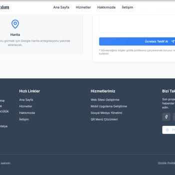 Merhaba, profesyonel bir Web Geliştirici ve Yazılım Mühendisi olarak modern, hızlı ve kullanıcı dostu web siteleri geliştiriyorum. Hizmetlerim arasında kurumsal web siteleri, admin panelli sistemler, e-ticaret ve portfolyo siteleri, mobil uyumlu tasarımlar, SEO uyumlu siteler ve QR Kod çözümleri (dijital menü, Google yorum ve puanlama, kampanya yönlendirmeleri) bulunmaktadır. Projelerinizi zamanında ve yüksek kaliteyle hayata geçirmek için buradayım.