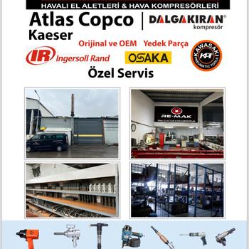 Re-mak havalı el aletleri&Hava kompresörleri vidalı pistonlu kompresör tamir bakım yedek parça Sıfır 2. el satış kiralama Atlas copco Dalgakıran İngersoll Rand Özel Servis