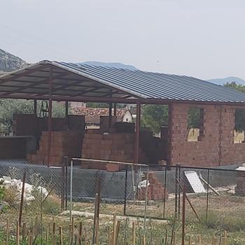 Çelik çatılı trapez saç veya sandviç panel çatılı yazlık ev yapımı kat üstüne profilden kat çıkma duvar örme işleri yapılır.