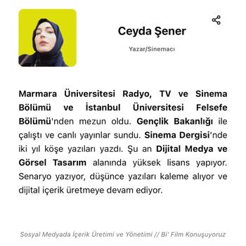 Profilimde bahsettiğim gibi Marmara Üniversitesi Radyo Tv ve Sinema ve felsefe mezunuyum. Şu anda Marmara Üniversitesi Dijital Medya ve Görsel Tasarım Yüksek Lisans okuyorum. Prof. Ali Murat Kırık Hocadan Yeni Medya ve Dijital Pazarlama dersleri aldım. Sosyal Medya Ve İçerik Üretimi ve Yönetimi alanında Doç. Bilge Şenyüz’den ders aldım. Hocamızdan referanslıyım. Kampanaya ve logolar hazırladım. Özel kurumların danışmanı oldum. özel dersler aldım, projeler yönettim. Mektup adresim ssinekavgam Gmail