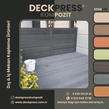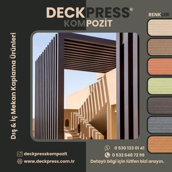 Deckpress Kompozit Ahşap Plastik ve İnş. Malz. San. Tic. Ltd. Şti. olarak ahşap kompozit sektöründe 15 yılı aşkın terübemiz ile ilerlemeye devam etmekteyiz. Son teknoloji ürünü olan WPC deck ahşap kompozit ürünlerinin üretim, tasarım, satış pazarlama ve uygulama hizmetlerini vermekteyiz. İstanbul merkezli olan firmamız tüm Türkiye ve Avrupa olmak üzere dünyanın dört bir yanında ahşap kompozit yapı malzemeleri ve uygulamaları alanında faliyet göstermekteyiz.