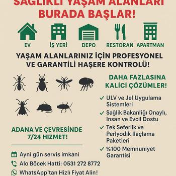Her türlü haşere ilaçlama uygulaması yapılır. Kullandıgımız tüm ürünler saglık bakanlıgı onaylı çevre dostu ve saglıga zararsızdır. Ücretsiz haşere keşfi yapılır. Ayrıca özel cihazlarımızla evinize her türlü bakteri mikrop için dezenfeksiyon işlemi yapılır.