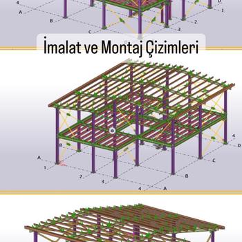 Çelik yapılar statik analizi imalat ve montaj çizimleri Betonarme yapılar statik analizi Ruhsat ve Uygulama projeleri Agır çelik uygulaması imalat ve montaj (villa,sanayi yapıları)