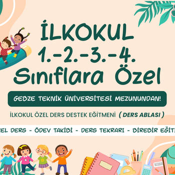 Gebze ve çevresi için Gebze Teknik Üniversitesi Matematik Mezunundan İlk okul öğrencilerine Matematik, Hayat Bilgisi, Türkçe Özel ders ve Ödev ablası Merhabalar Sn. Veliler çocuklarına vereceğiniz en güzel hediye onlara sağlayabileceğiniz gelecekten geçmektedir. Bugün kalabalık sınıflarda imkanların kısıtlı olması çocuklarınızı derslerinden ve hayat yolculuklarından geri bırakmasın. İsterseniz Özel ders şeklinde ya da toplu Etüt günlerimizde ki gruplar halinde derslerimize çocuklarınızı kayıt ettirebilirsiniz.