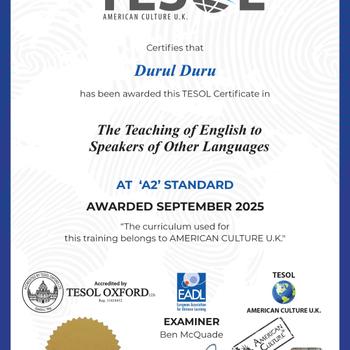 Bilkent Üniversitesi mezunuyum. İngiltere Southampton şehri Southampton üniversitesinde İngilizce lisan eğitimi aldım . TESOL Sertifikalı İngilizce öğretmeniyim. Grammar, Reading, Speaking, Writing, Listening uzmanlık alanlarım. İlkokul ve Ortaokul öğrencilerine ders vermekteyim.