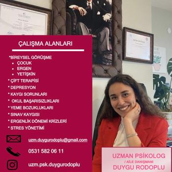 Atılım Üniversitesi Psikoloji, Ufuk Üniversitesi Gelişimsel Sosyal Psikoloji Yüksek Lisans Programından mezun oldum. Çocuk, ergen, yetişkin ve ailelerle çalışmaktayım, kendime ait ofisimde danışanlarımı aktif olarak görmekteyim. Aynı zamanda özel bir kuruma yarı zamanlı danışmanlık vermekteyim. Burada ergen bireyler ve ebeveynleriyle beraber sınav kaygısı, zaman yönetimi, stres yönetimi gibi konular üzerine çalışmaktayız. Çalışma alanlarım arasında depresyon, anksiyete, kaygı sorunları, yeme bozuklukları, okul başarısızlıkları, ergenlik dönemi krizleri gibi konular bulunmakta.