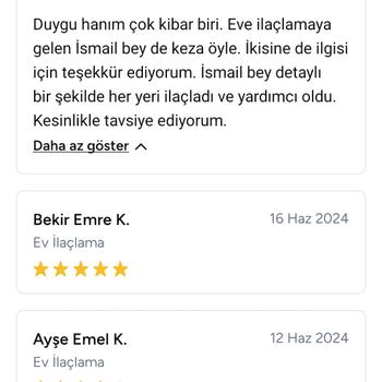 15 yıldır Tüm ev ve işyerlerinizi tüm belgelerimiz mevcuttur olarak güvenle ilaçlıyoruz.Çözüm odaklı ve dürüstlük ilkesi ile çalıştığımız için geri dönüşler memnuniyet mesajları oluyor.Uygun fiyat kaliteli düzgün hizmet sonuna kadar yaptığımız hizmetin arkasındayız.