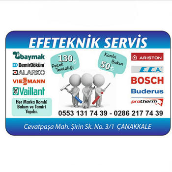 EFETEKNİK SERVİS olarak siz değerli müşterilerimize Çanakkale ilimizde 6 yıldır hizmet vermekteyiz kullandığımız her türlü yedek parçada 1yıl garanti vermekte olup parça değişiminden sonra (değişen parçada) çıkabilecek her türlü probleme ücretsiz servis imkanı sağlamaktayız şimdiden bizi tercih ettiğiniz için teşekkür ederiz EFETEKNİK SERVİS her zaman yanınızda.