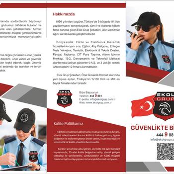 1999 yılında hizmet sektöründe faaliyetlerini yürütmek üzere kurulan Firmamıza ait Özet Tanıtım Formu ile Firma Kataloğumuz ekte bilginize sunulmuştur. Form ve Kataloğumuz incelendiğinde görüleceği üzere; Firmamız, Türkiye’de, 9 bölge müdürlüğü yapılanması ile 81 il ve 485 ilçede 7500 çalışanı ile hizmet sektöründe (Güvenlik, Temizlik, Teknik, Elektronik, Entegre Bina ve Tesis Yönetimi, Park, Bahçe, Peyzaj, Eğitim, Danışmanlık, Servis, Destek hizmet personeli,Poligon vb. hizmet alanları) faaliyetlerini etkin bir şekilde yürütmektedir. Modern ve Değer Temelli Müşteri Anlayışı ile hizmetlerini yürüten Firmamız, müşterilerimiz beklentilerini de aşarak onları mest edecek düzeyde planlamalar yapmakta ve tamamen müşteri memnuniyeti esasına göre hizmetlerini icra etmektedir. Nazik vaktinizden kısa bir süre bizlere ayırmanız halinde, sizlerle Makamınızda tanışmak, biraz daha detaylı tanıtım ve fikir alış-verişinde bulunmaktan memnuniyet duyacağımızı bilmenizi ister ve Firmanızın Güvenlik, Temizlik, Teknik, Elektronik, Entegre Bina ve Tesis Yönetimi, Park, Bahçe, Peyzaj, Eğitim, Danışmanlık, Servis, Destek hizmet personeli vb. hizmet alanları için, teklif kapsamında, hizmet alımlarına davet edilmemizi bilgilerinize arz ederiz. Saygılarımızla, iyi çalışmalar dileriz. " EKOL GRUP ŞİRKETLERİ " olarak sizlere de ulaşabilmek ümidiyle…