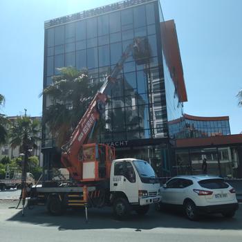 Sepetli platform 20 metreden 50 mt kadar platform mevcuttur Dış cam Temizligi Cephe kaplama montajı Cephe cam montajı Cephe boya Cephe tamir siva işleri Reklam tabela montajı Elektrik direği lamba montajı Kamera montajı İnsaat celik çatı montajı Pimas montajı Güvenlik li evrakli çalışmanın tek adresidir