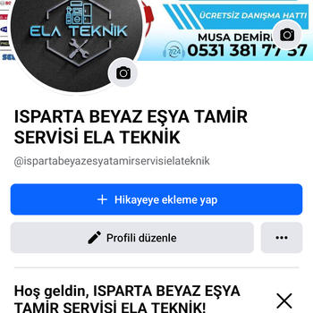 Ela teknik Beyaz eşya servisi olarak 1 yıl parça garantisi ve uygun işçilik ile Isparta merkez de hizmet veriyorum her marka beyaz eşya tamir ve bakım ve ücretsiz tanışma hizmeti ile 7/24 arayabilirsiniz