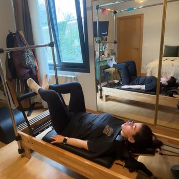 Merhaba ben elif fizyoterapistim stüdyomdaki reformer Pilates aleti ile ders veriyorum
