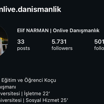 İg: elifonlive.danismanlik merhabalar ben üç senedir profesyonel olarak öğrenci koçluğu yapmaktayım . diğer sosyal medya hesaplarımda referans bölümlerinden yerleştirdiğim üniversite öğrencilerimi görüntüleyebilirsiniz. benimle çalışmak isterseniz buradan veya ilk başta yazdığım hesabımdan benimle iletişime geçebilirsiniz